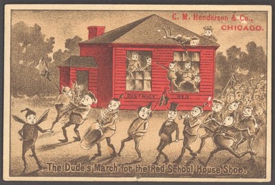 Title (ebay affiliate link): 1890s Palmer Cox Brownies Trade Card ~ School House Shoes ~ Chicago #2