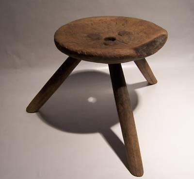 Antique Primitive Carved Wood Hearth 3 Leg Stool