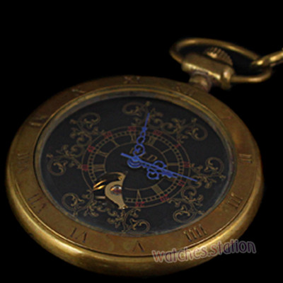 Title (ebay affiliate link): Antique Steampunk Copper Flat Black Dial Pocket Watch Mechanical Clock Chain