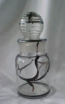 ANTIQUE SILVER OVERLAY APOTHECARY JAR WITH LID