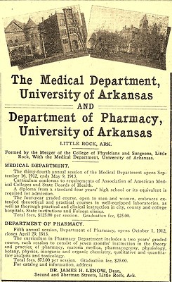 1912 UNIVERSITY OF ARKANSAS, MEDICAL AND PHARMACY DEPARTMENTS ADVERTISEMENT