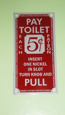 Title (ebay affiliate link): VINTAGE 5 CENT SUBWAY BUS PORCELAIN PAY TOILET SIGN NOS WAREHOUSE FIND