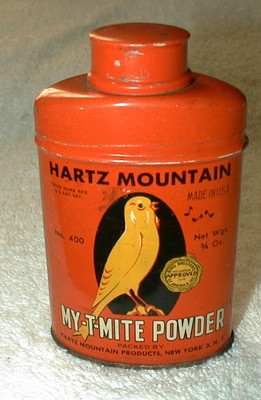 Title (ebay affiliate link): VINTAGE HARTZ MOUNTAIN MY-T-MITE CANARY POWDER 3 3/4" TIN W/CONTENTS FREE SHIP