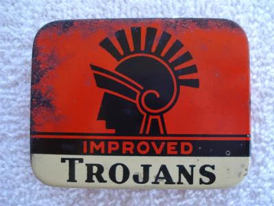 Title (ebay affiliate link): Vintage-Trojans Condom Tin w/ Original Paper/Advertising Sheet-Youngs Rubber Co.