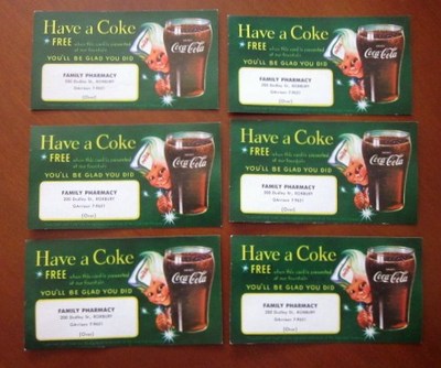 Title (ebay affiliate link): 6 - Have A Coke Free at Our Fountain - Sprite Boy & Glass of Coca Cola - Mass