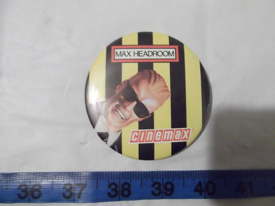 Title (ebay affiliate link): Max Headroom Button Badge Pin 3" Cinemax Vintage 1980's Cable TV Coca Cola Coke