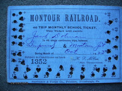 MONTOUR RAILROAD 1923 46 TRIP MONTHLY SCHOOL TICKET JACOB DOLINAR