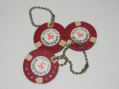 Title (ebay affiliate link): Lot 3 Vtg Key Chain Embjador Hotel Casino Las Vegas NV $5 Casino Chip Token (Y