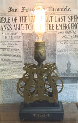 Steam Punk Lamp vintage parts antique lamp parts table lamp clock gears