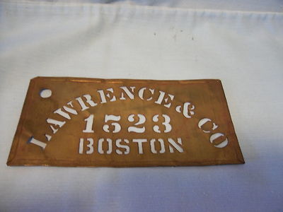 OLD ADVERTIZING BRASS PACKING HOUSE STENCIL "LAWRENCE & CO 1523 BOSTON"