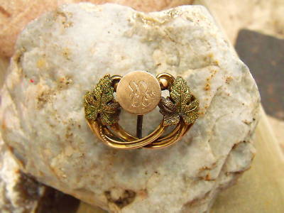 Antique Victorian Watch Pin, Gold With Leaf Accents