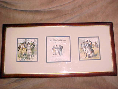 Title (ebay affiliate link): 3 framed panels Historical Military Sketches of the US Army by J & P Coats 1880s