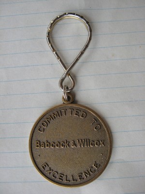 Vintage Babcock & Wilcox Brass Key Ring Chain B&W Barberton Ohio US Mail Postage