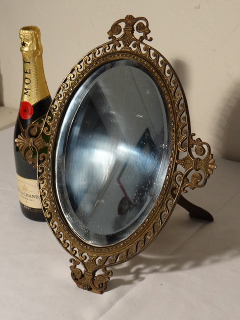 Title (ebay affiliate link): Antique Bronze Table Mirror 19th Century Beveled Glass Wood Stand Rococco Period