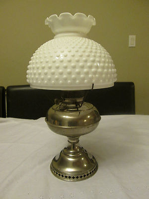 Title (ebay affiliate link): ANTIQUE RAYO Nickel Plated Hobnail Milk Glass Kerosene Oil Lamp 1890s EXC Cond.!