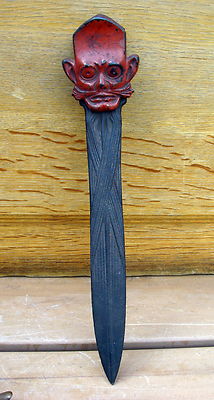 ANTIQUE CAST IRON SHAMAN RITUAL MONKEY MASK DEMON DAGGER CLIP