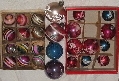 Title (ebay affiliate link): VINTAGE 26 SHINY BRITE CHRISTMAS TREE ORNAMENTS GLITTER STENCILED SCENES 2 & 3"