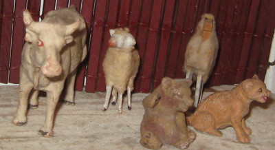 VINTAGE GERMAN PUTZ CHRISTMAS FARM ~ ZOO ANIMALS SHEEP COW CUB LION & BEAR
