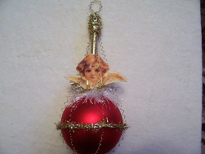 VINTAGE style Christmas Balloon ornament,glass,scrap,paper,tinsel,wood,handmade