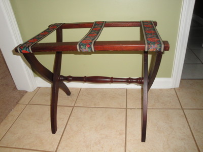 Title (ebay affiliate link): Vtg Wooden Luggage Suitcase Folding Rack Strand Hotel Tapestry Straps Wood