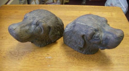 Pair vintage antique carved wood dog head arm rest furniture parts