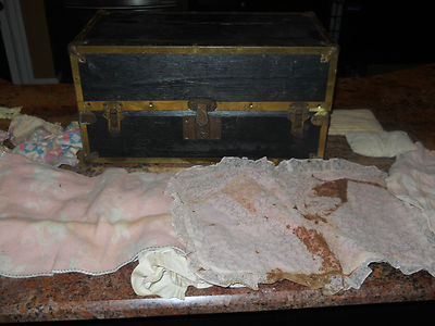 Title (ebay affiliate link): VINTAGE, GREEN TOY WORKS, TOY/DOLL MINIATURE STEAMER TRUNK, WOOD/BRASS