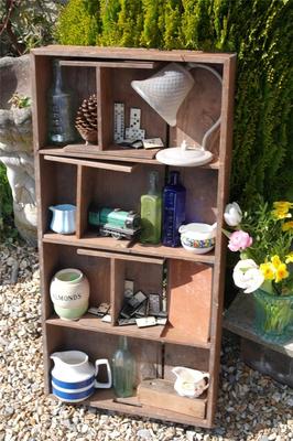 Title (ebay affiliate link): Vintage Pine Rack Shelf Haberdashery Tray Antique Tool Tray Rustic Chic Table To