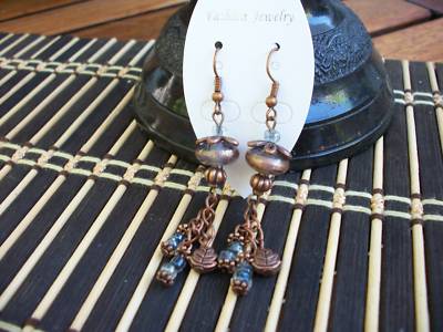 Antique copper & glass bead dangle earrings