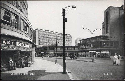 Title (ebay affiliate link): Cheapside, BRADFORD, Lillywhite's RP postcard c.1960s, unused, traffic policeman