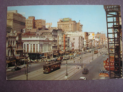 VINTAGE POSTCARD CANAL STREET, NEW ORLEANS LOUISIANA ROYAL CASTLE STREETCARS