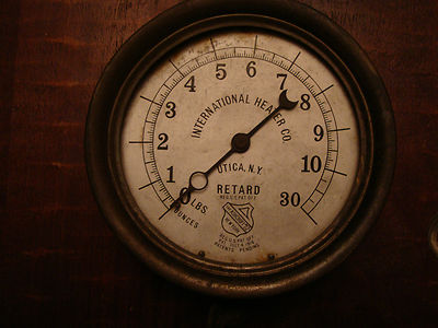 ANTIQUE INTERNATIONAL HEATER CO. STEAM RETARD GUAGE. STEAM PUNK