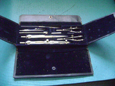 ANTIQUE DRAFTING SET IN LEATHER CASE