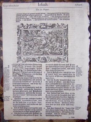 Title (ebay affiliate link): 1568 1ST EDITION BISHOPS BIBLE LEAF/RARE/BOOK OF JOSHUA WITH LARGE WOODCUT!
