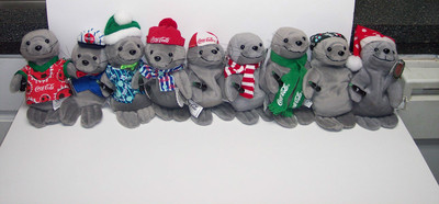 Title (ebay affiliate link): COCA COLA SEAL PLUSH LOT OF 9 GREY SEALS WITH COKE BOTTLES HOLIDAY VERY CUTE!!!!