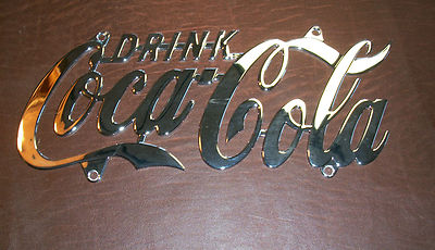 COCA COLA METAL CHROME PLATED EMBLEM / NAMEPLATE / SIGN COKE PEPSI 7UP BUBBLE UP