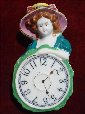 ASIAN ANTIQUE JAPAN PORCELAIN WALL POCKET VASE LADY HAT CLOCK SIGNED (H : 7,15")