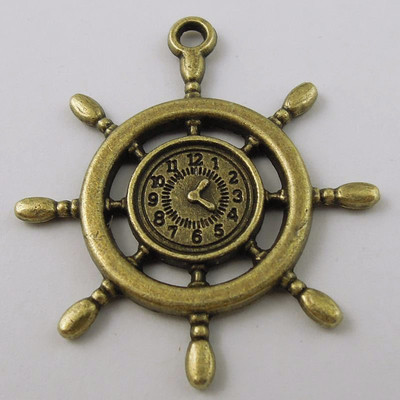 Title (ebay affiliate link): **16pcs Antique Style Bronze Tone Alloy Sailing Wheel Clock Pendant Charms 36mm
