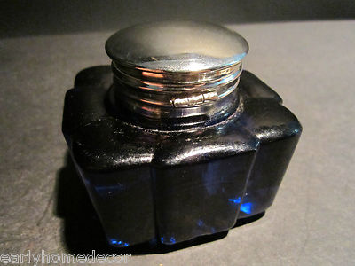 Title (ebay affiliate link): 19th C Antique Vintage Style Cobalt Blue Heavy Solid Glass Inkwell Ink