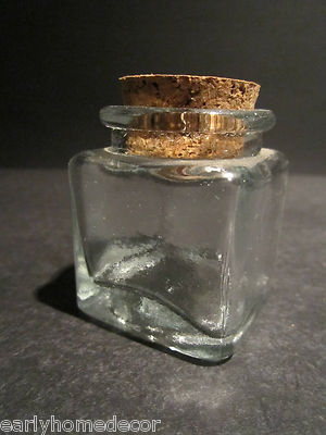 19th C Antique Style Solid Clear Thick Glass Cork Top Inkwell Ink pot Bottle