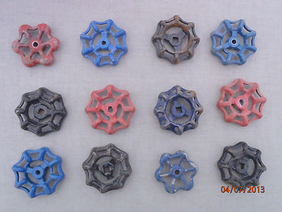 Lot of 12 cast iron antique garden water faucet valves knobs, steam punk vintage
