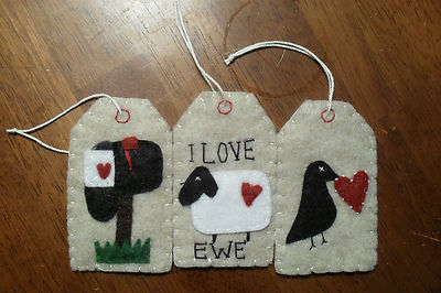 Title (ebay affiliate link): 3 VaLeNtiNe PRiMiTiVe PeNnY RuG TaG OrNiEs(MaiLBoX, ShEeP, CrOw W/ HeArT)