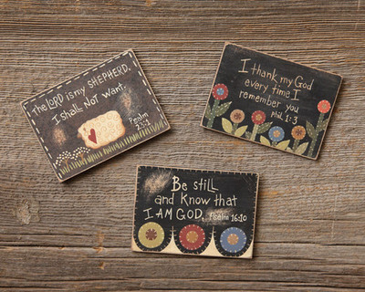 Title (ebay affiliate link): PRIMITIVE~ WOOD~BIBLE VERSES MAGNETS~SET OF 3~NEW