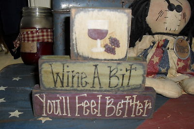 Title (ebay affiliate link): PRiMiTiVe SpRiNg/SuMmEr ShELf SiTtEr BLoCks (WINE A BIT YOU'LL FEEL BETTER)