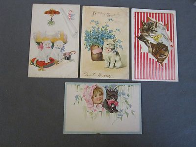 Title (ebay affiliate link): KITTY CATS- 4 -" HELLO PEOPLE-BIRTHDAY-HAPPY NEW YEAR- GIRL & HER BLACK KITTY"