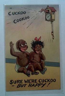 Title (ebay affiliate link): Cuckoo kids big lips BLACK AMERICANA Vintage Comic Postcard Offensive Humor