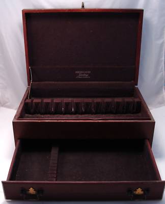 Title (ebay affiliate link): Two Tier Sterling Silver Plate Wood Flatware Case