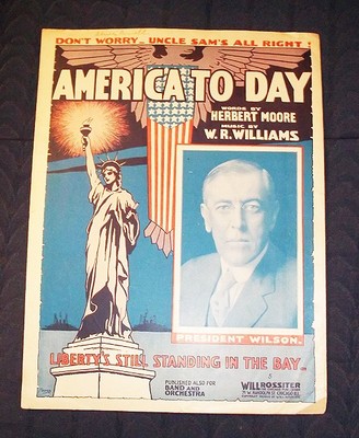 VERY COLORFUL PRESIDENT WOODROW WILSON SHEET MUSIC WW I 1917