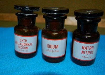 3 AMBER APOTHECARY BOTTLES WITH EMBOSSED BASES