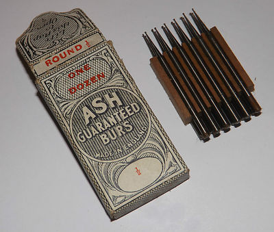 Title (ebay affiliate link): Vintage Dentist Drills Ash Burs Tools Amalgamated Dental Co Ltd Antique Boxed 12