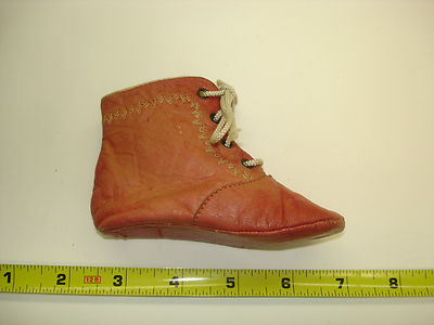 Title (ebay affiliate link): Antique Red Leather Single Baby Shoe to display a little doll